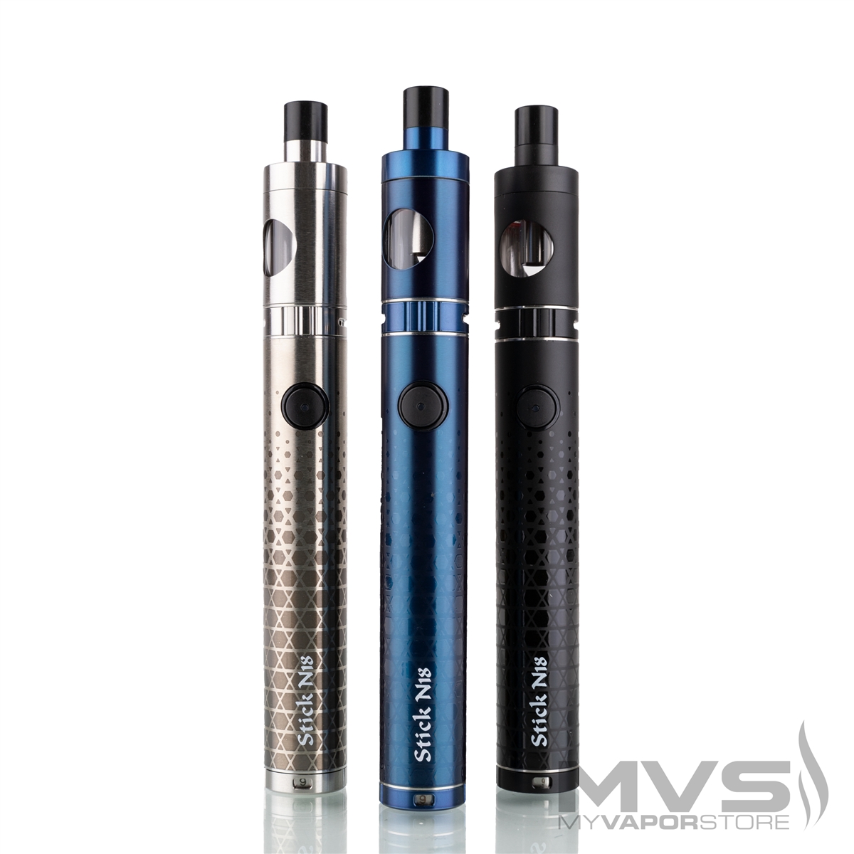 The Smok Stick N18 Vape Kit is a smaller form factor design of the Smok Stick R22 constructed with Steel and finished with unique design. The Smok Stick N18 is powered by a built-in 1300mAh capable of firing up to 30Watts. The Stick N18 features a simple one button design and features 5 different power settings between 9 to 30Watts. Paired with a 3.0ml Tank the Smok Stick N18 is compatible with the Smok Nord Replacement Atomizer Heads for best flavor and vapor experience. The Smok Stick N18 can be quickly charged via the USB Type-C Charging port.